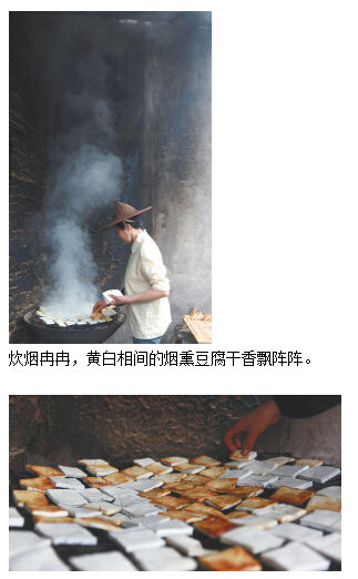 炊煙冉冉,黃白相間的煙熏豆腐干香飄陣陣。