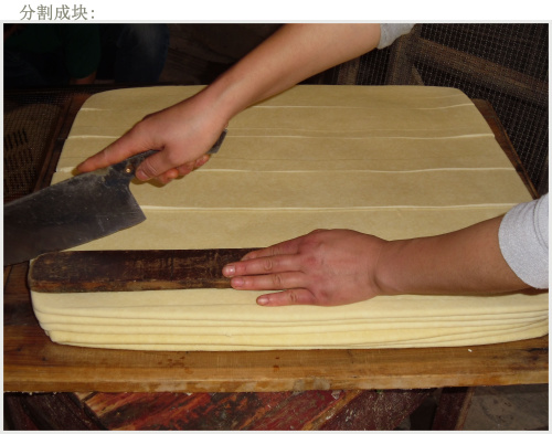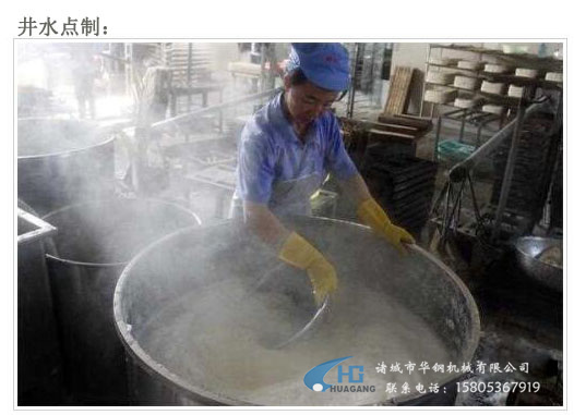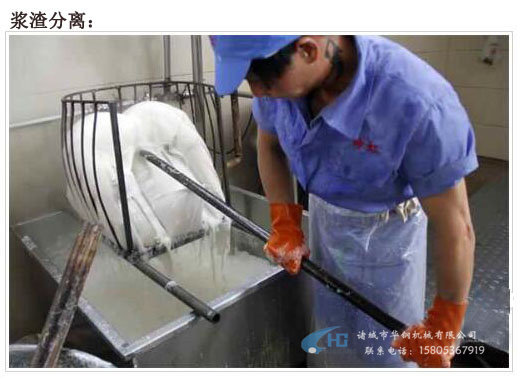 浸泡黃豆、開始磨漿,再經(jīng)過濾漿、煮漿、點(diǎn)漿、上箱、過鹵、切塊、上扦、晾干等近十道工序.