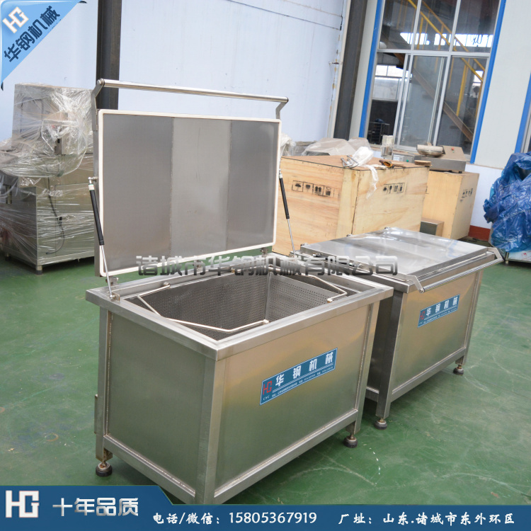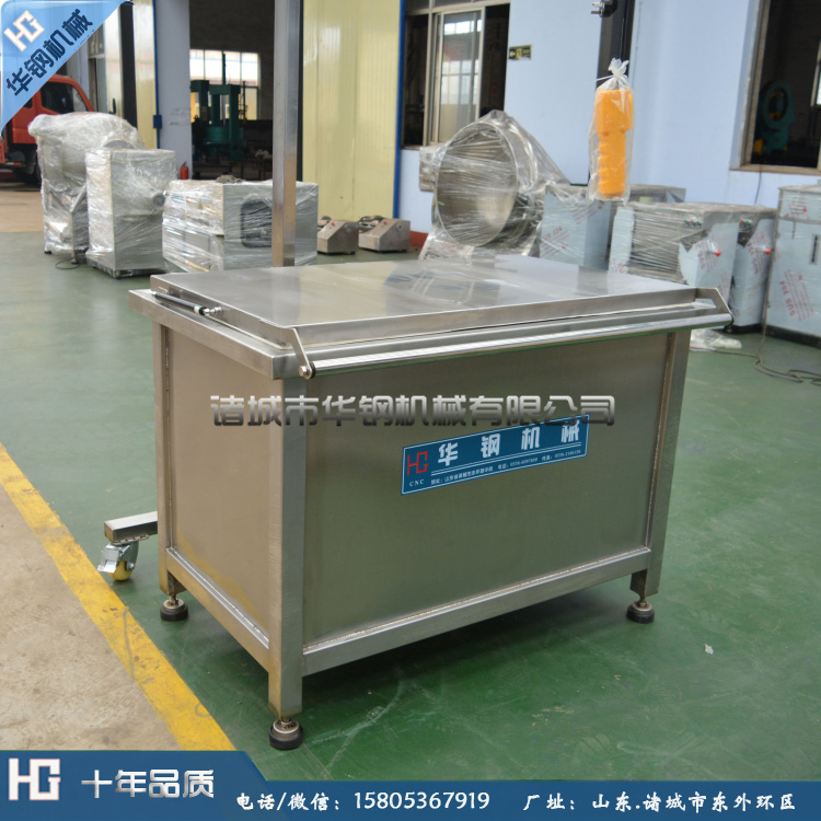 諸城華鋼機械新款方形蒸煮鍋,方形鹵煮槽 自動提升鹵煮鍋以食品級304不銹鋼制作,可滿足不同客戶的不同需求,尺寸可以根據產量要求定做,可分為電加熱和蒸汽加熱兩種,設備可選配自動控溫裝置,有 效的控制鍋內溫度和蒸煮時間,配有內筐,產品放在內筐內蒸煮,衛生干凈,方便操作,可自動通過提升裝置把筐提起。鍋外壁帶有保溫層,有 效的防止熱量的散發,節約能源.鍋底有手動閥門,可方便清理;適合大型鹵煮肉制品,雞產品等加工廠選用;