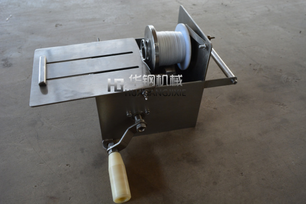 手搖式扎線機(jī)是香腸、烤腸小型加工生產(chǎn)及代加工生產(chǎn)行業(yè)中的一種設(shè)備,它可以有效的提高小型加工行業(yè)的出品率,同時(shí)又節(jié)省了成本,少去了不少大型設(shè)備所帶來的一些不必要的麻煩。