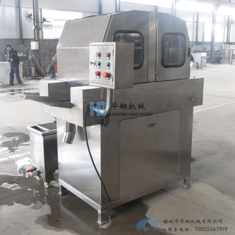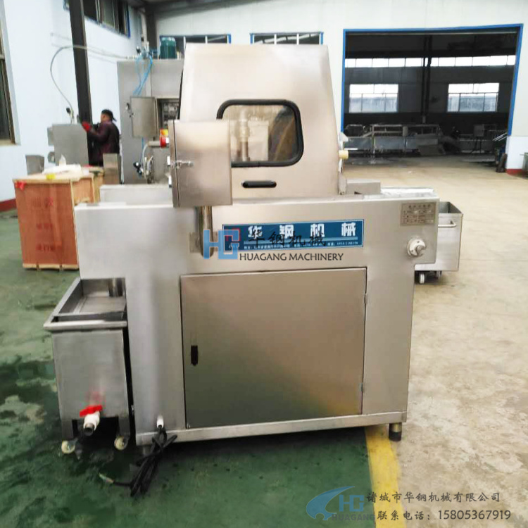華鋼系列鹽水注射機可將鹽水及輔料配制的腌漬劑均勻地注射到肉塊中,大大提高了肉制品的品味和出品率。用戶可根據工藝要求,通過調節步進速度、步進距離、壓肉板間隙及注射壓力,將腌漬液定量、均勻、連續的注入肉中,從而實現產品的注射效果。可調的速度及壓力,確保一次性均勻注射產品。可帶骨注射各種肉制品及雞鴨等產品!