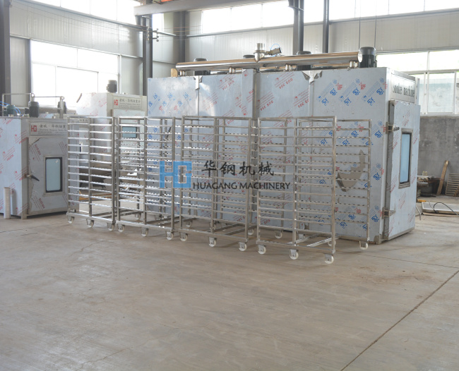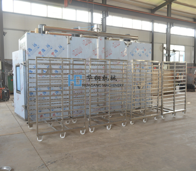 華鋼系列電加熱HGYX-1000通道式煙熏爐。適用于用于臘腸,火腿,烤腸,培根,臘肉,烤雞,熏魚,烤鴨以及家禽,水產品等熏制產品,烘烤烘干,上色一次成型.煙熏色澤好,口感更佳.質量保證,技術優良,操作方便。經過煙熏后食品的顏色好看,還有一種煙熏后的香味,讓人感覺香而不膩,也能達到環保效果,代替了傳統的煙熏爐方法,節省了工人的勞動了,提高工作效率,更增強了食品的口感及彈性。