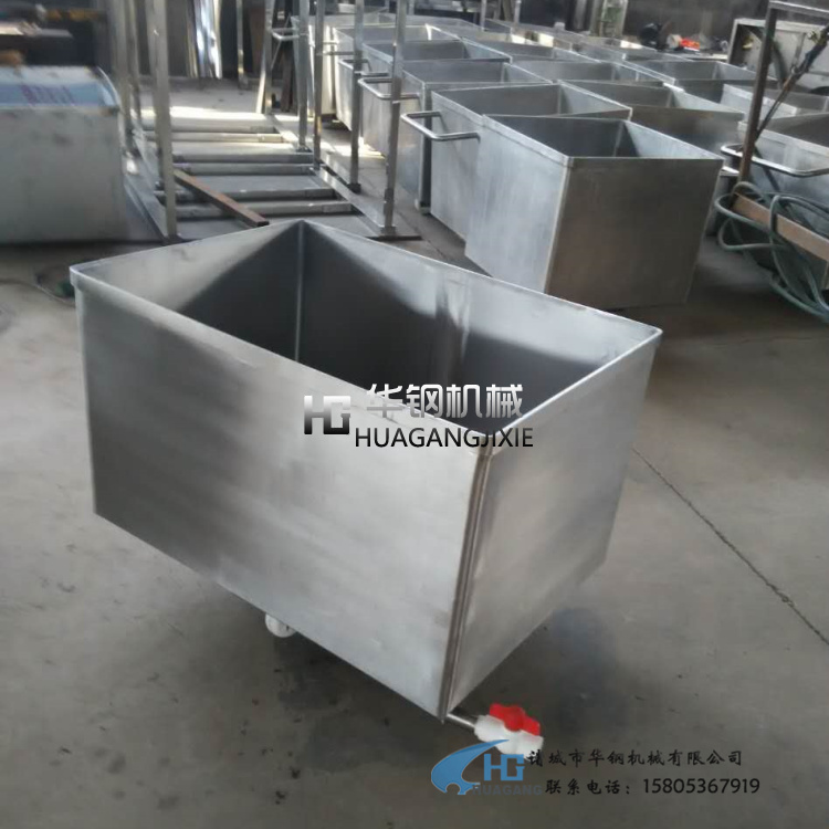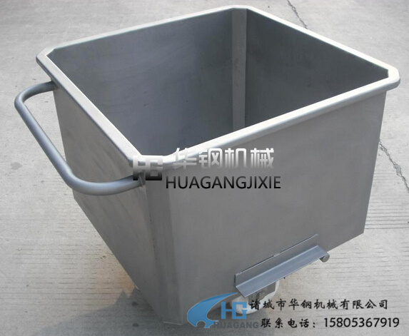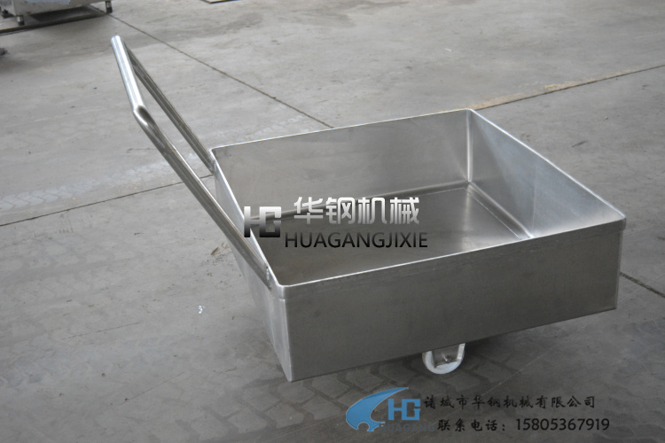 諸城華鋼機械肉料車,料斗車,斗式提升車,小料車,不銹鋼桶車,方形推車。