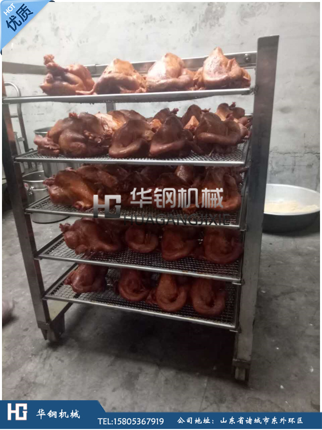 7.推車底部輪子采用耐高溫定向輪,符合食品衛生要求。煙熏機