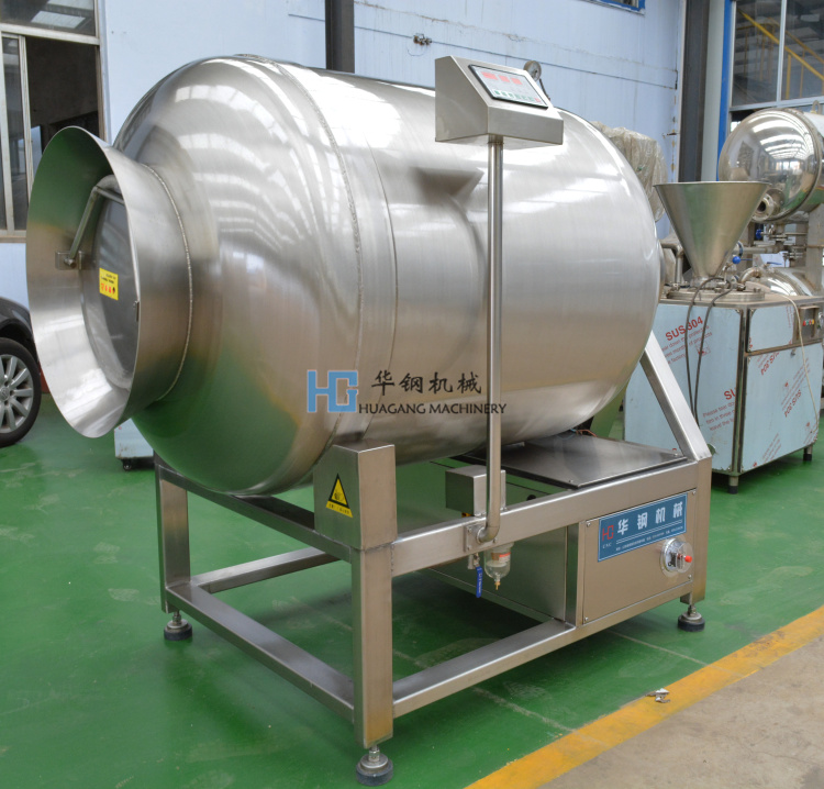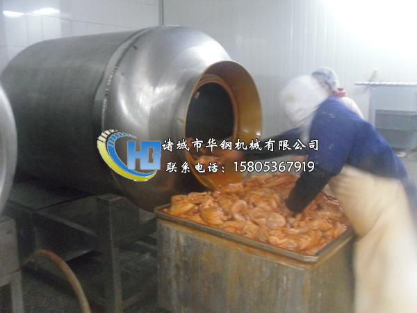 肉制品在滾揉的過程中對肉量都會有一定的限制性,滾揉機一般為滾筒總量的三分之二為合適,如果滾揉過程中添加肉制品的數量過多則會影響肉制品的加工質量,主要是因為肉制品滾揉的數量過多會導致滾揉時間增長,于此同時料水不能充分的滲入到肉制品的內部嚴重影響肉制品的加工口感,導致滾柔失敗。還有一種原因就是滾揉的肉量過多會導致壓力過大嚴重影響滾揉機滾筒的正常使用,加大機器的工作壓力縮短滾揉機的使用壽命。