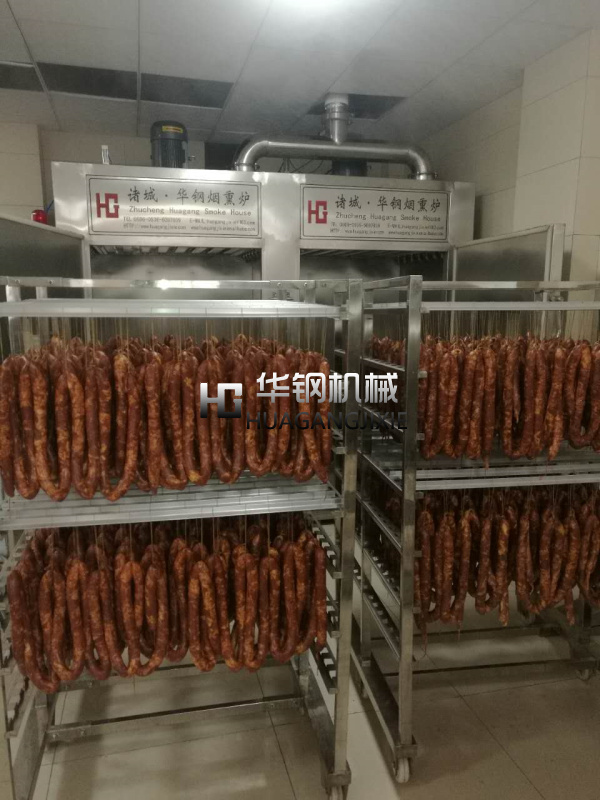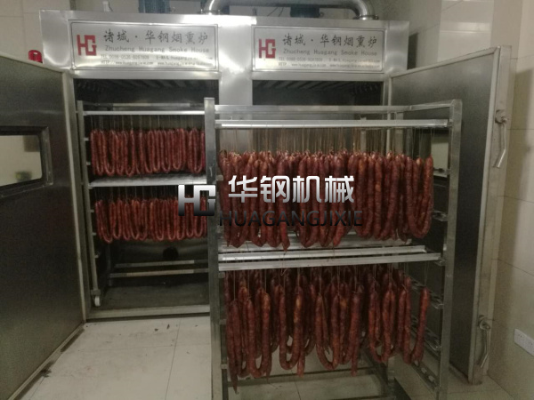 煙熏爐是各種香腸,臘肉,熏雞、烤鴨等肉產品,煙熏豆腐干等不可缺少的設備之一,具有蒸,烘烤、煙熏、排風等功能。根據客戶的反饋以及市場的需求,經過多年的摸索探索研制生產,加熱升溫裝置有蒸汽加熱或者電熱管加熱,同時集成了循環控制,發煙,烘烤干燥等系統,煙熏的過程縮短,提高生產效率;并能控制煙熏料(果木,木屑,稻殼米糠,白砂糖)的量,幫助生產企業有效控制了成本,對產品進行了性能更高,設備更合理的改進,使其加熱速度、烘干效果、煙熏效果都達到了理想的效果。