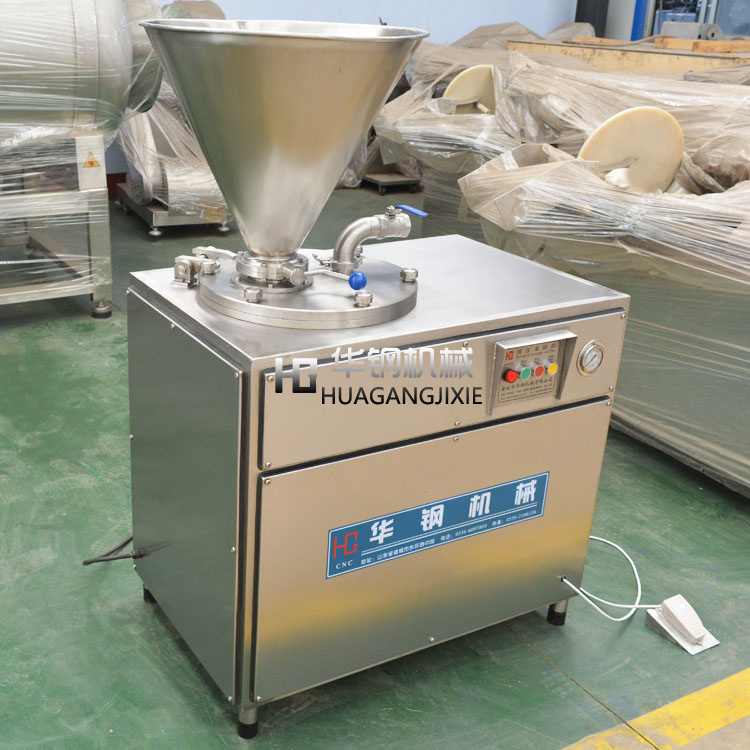 液壓灌腸機是加工腸類制品的設備,能灌制大、中、小各種規格的腸制品。此機外形美觀、做工精良、操作方便、使用可靠。機器的料斗、閥門、灌腸管以及整機外包裝均采用不銹鋼制造,符合食品衛生要求。