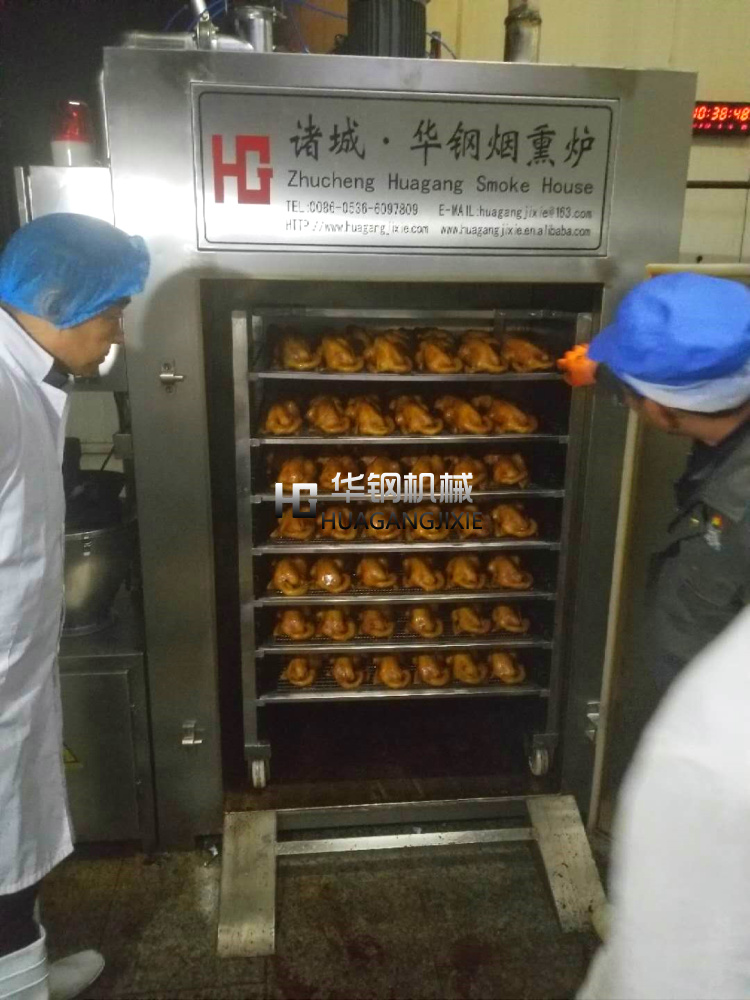 華鋼糖熏爐是各種香腸,熟食,熏雞、烤鴨等肉產品不可缺少的設備之一,具有干燥、蒸煮、烤、煙熏、排風等功能。根據客戶的反饋以及市場的需求,經過多年的摸索探索研制生產,煙熏的過程縮短,提高生產效率;并能控制煙熏料的量,幫助生產企業有效控制了成本,對產品進行了性能更高,設備更合理的改進,使其加熱速度和煙熏效果都達到了理想的效果