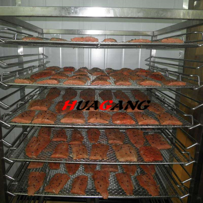 煙熏根據處理溫度的高低可將煙熏分為冷熏、溫熏、熱熏,這三者沒有明顯的界線,各自劃分的溫度區域也不盡相同。把0~30℃定為冷熏,30~50℃為溫熏,50~80℃為熱熏,80℃以上的稱為烘熏。