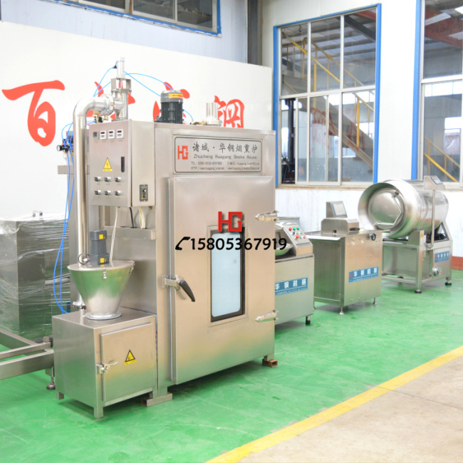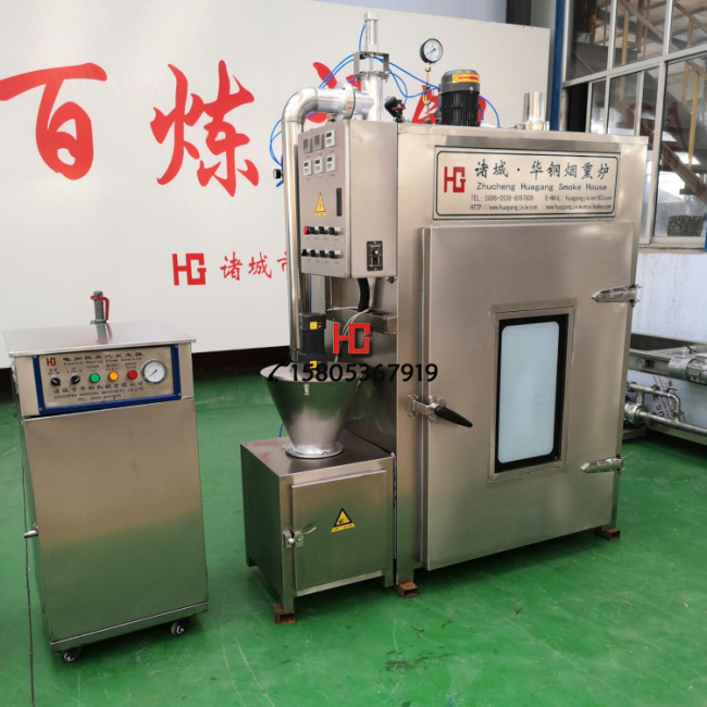 該機器循環風設計合理,相比傳統煙熏,該機器煙熏上色均勻,色澤美觀,出品率高。使用的發煙材料也相比傳統煙熏料 要少很多。