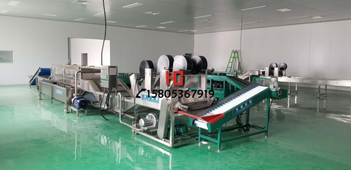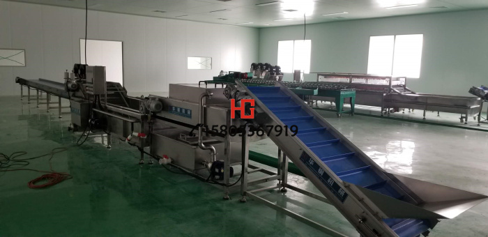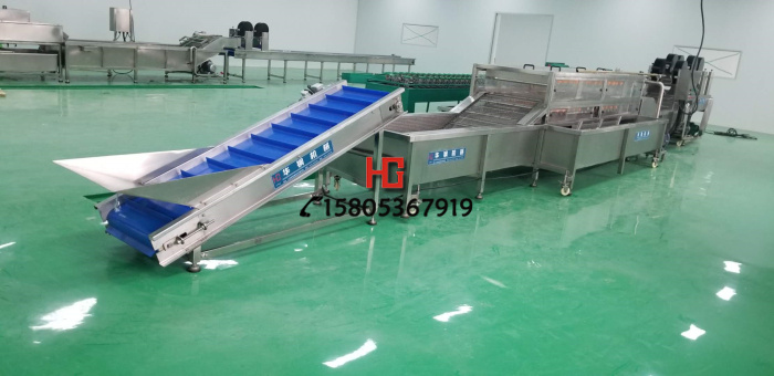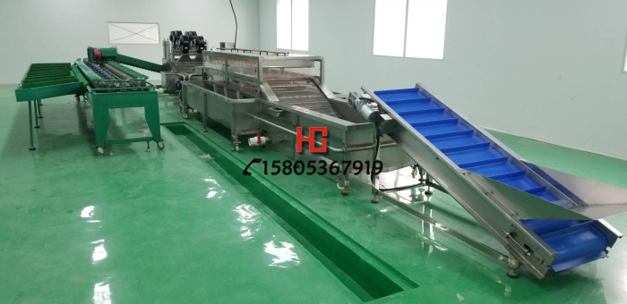 清洗機采用自動高壓噴淋系統和泡沫發生器,通過毛刷與果蔬的直接接觸,既可以清洗果蔬表面的污漬又可以保護果蔬不受損傷,并將果蔬推入下一加工環節。