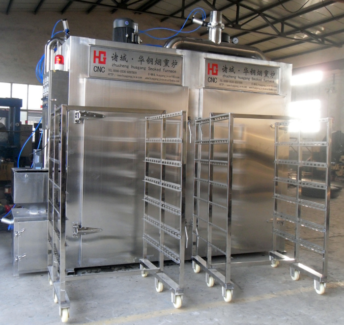 華鋼煙熏爐去掉煙熏功能的煙熏爐是一臺烘烤爐,一般的醬板鴨和烤鴨用的都是烘烤爐,也有一部分客戶會選擇帶煙熏功能,這點用戶朋友可以選擇。