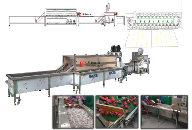 2. 火龍果清洗機效率高,占地面積小,安全可靠。