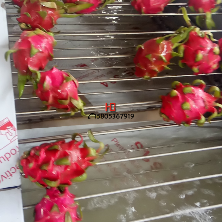 1. 火龍果噴淋清洗機省水,省電,省時,干凈衛(wèi)生,不損壞產(chǎn)品。