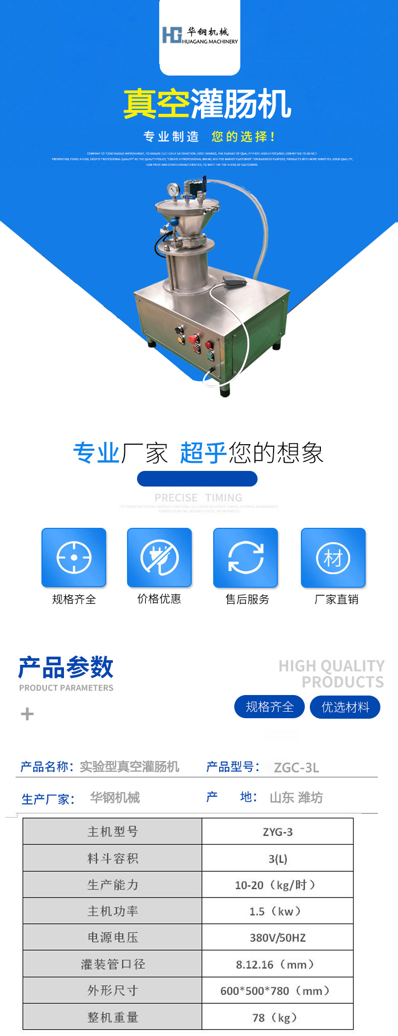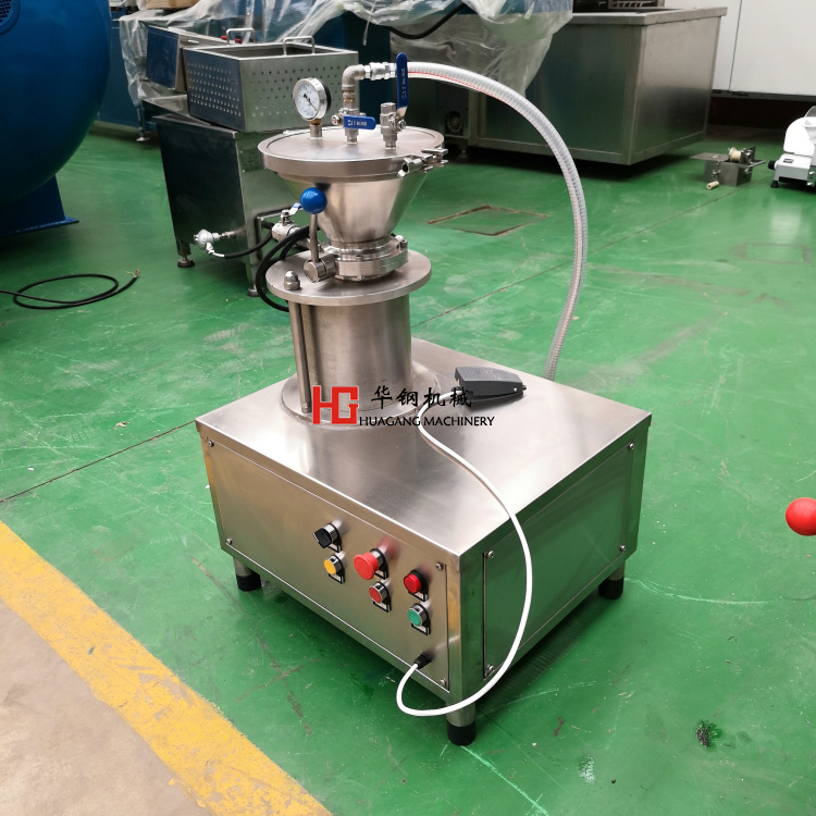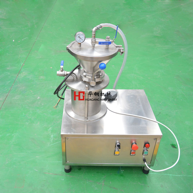 實(shí)驗(yàn)室用小型真空灌腸機(jī)整機(jī)采用不銹鋼制成,外型美觀,結(jié)構(gòu)緊湊合理,密閉防水,易于清洗.用于制作肉醬灌腸,腳踏開(kāi)關(guān)點(diǎn)動(dòng)方式或連續(xù)灌腸,灌裝料斗配有真空裝置,使得產(chǎn)品是處于真空狀態(tài)下進(jìn)行灌裝,可根據(jù)加工需求不同型號(hào)的腸管,可根據(jù)腸衣的大小進(jìn)行更換.
