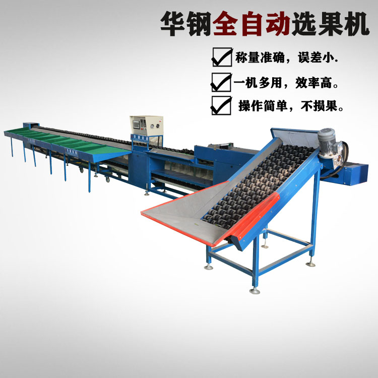 全自動選果機 適用于分選:蘋果、獼猴桃、柑桔、橙、甜瓜、西紅柿、火龍果、土豆、圓蔥等果蔬。