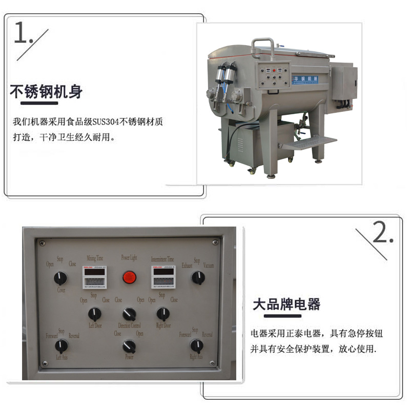 3、真空拌餡機在真空狀態下,餡料攪拌均勻,充分膨脹、彈性好、色澤鮮艷并限度地析出蛋白質。