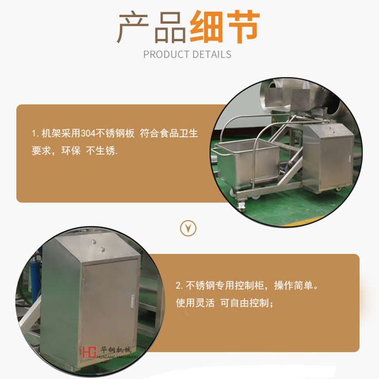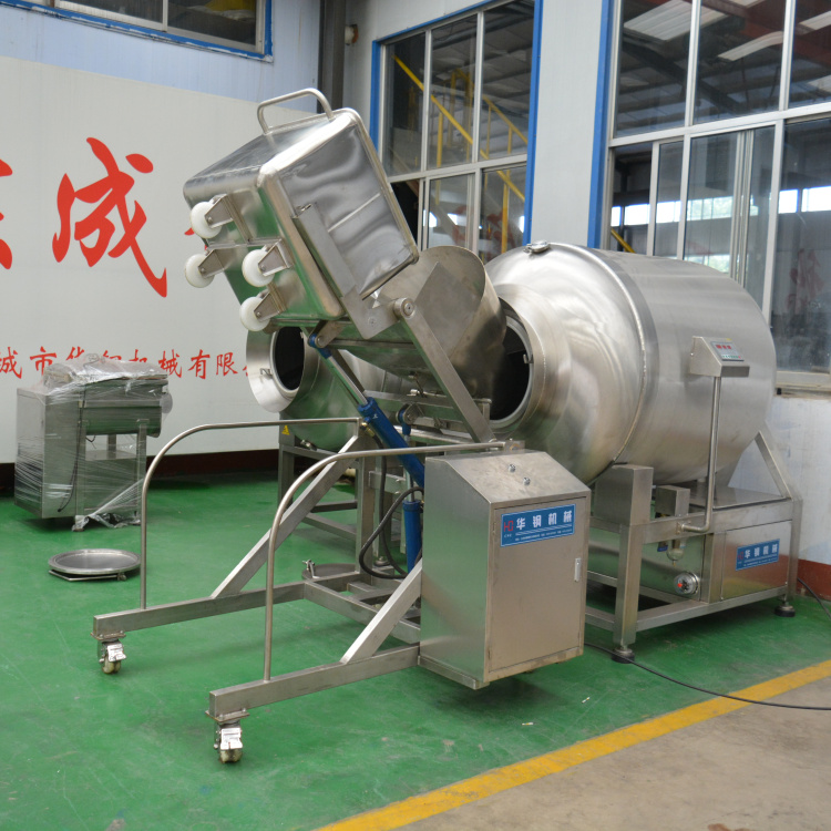 滾揉機(jī)上料機(jī) 液壓提升機(jī)使用液壓油提升,保持上料平穩(wěn),出料干凈,提升高度可調(diào),速度可調(diào),單次提升能力為220KG,是食品廠減輕工人勞動(dòng)強(qiáng)度的設(shè)備,本機(jī)采用不銹鋼制作,外型美觀,經(jīng)濟(jì)實(shí)用,一臺(tái)上料機(jī)可供幾臺(tái)滾揉機(jī)上料交替使用,設(shè)備四腳帶輪子,可移動(dòng),并帶有剎車系統(tǒng),上料時(shí)不會(huì)隨意移動(dòng)保證了設(shè)備的使用安全!全自動(dòng)真空滾揉機(jī)自動(dòng)上料在食品加工中發(fā)揮著重要的作用.滾揉機(jī)的應(yīng)用在食品加工制造行業(yè)有突出的效果,能夠很大限度的提高的生產(chǎn)效率.選購合適的滾揉機(jī)是食品加工企業(yè)提率的基礎(chǔ),滾揉機(jī)由多部分組成,好的滾揉機(jī)全部采用的不銹鋼制作而成,生產(chǎn)過程不會(huì)產(chǎn)生金屬秀污染,而且耐腐蝕.滾揉機(jī)有比較好的操作系統(tǒng),內(nèi)料在滾筒內(nèi)翻動(dòng)的時(shí)候,滾筒中的肉均勻的吸收腌漬,提高了肉的連接力和肉質(zhì)的彈性.