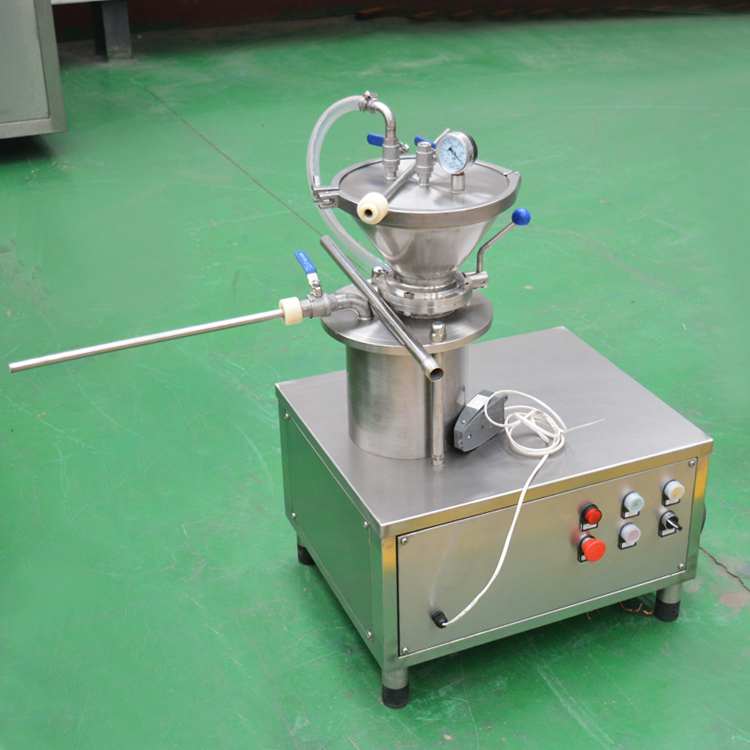 實驗室用小型真空灌腸機整機采用不銹鋼制成,外型美觀,結構緊湊合理,密閉防水,易于清洗.用于制作肉醬灌腸,腳踏開關點動方式或連續灌腸,灌裝料斗配有真空裝置,使得產品是處于真空狀態下進行灌裝,可根據加工需求不同型號的腸管,可根據腸衣的大小進行更換.