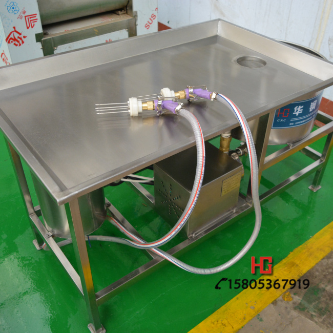 鹽水注射機(jī)手動(dòng) 用于各肉類食品的腌制調(diào)味。將鹽水及輔料注入肉中充分腌漬,使肉質(zhì)嫩化、松軟、味鮮,提高肉制品的品位和出品率。