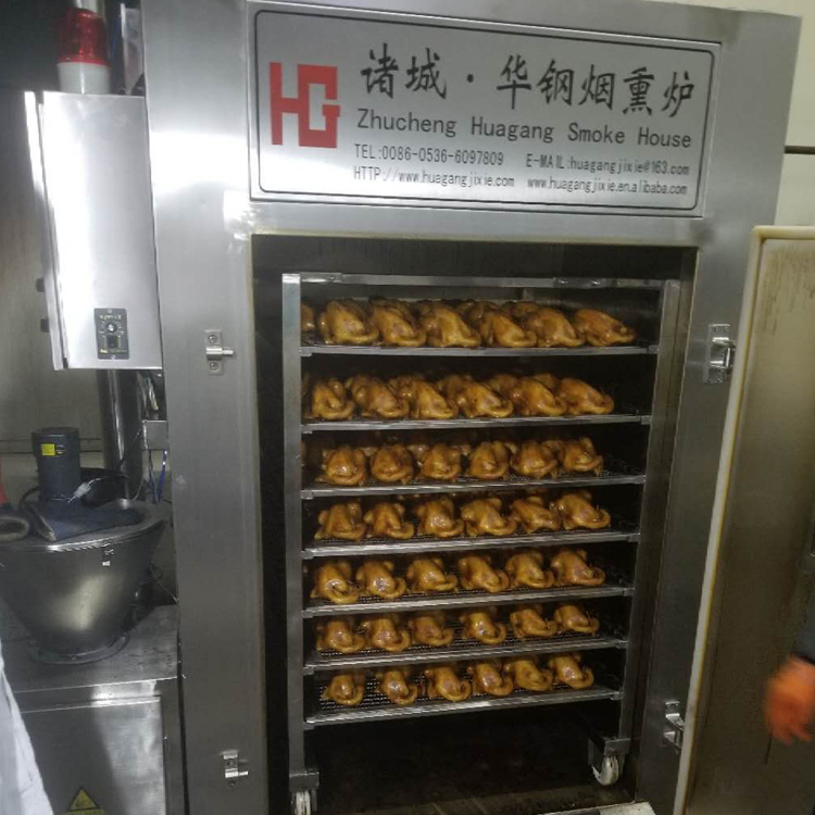華鋼糖熏爐是各種香腸,熟食,熏雞、烤鴨等肉產品不可缺少的設備之一,具有干燥、蒸煮、烤、煙熏、排風等功能。根據客戶的反饋以及市場的需求,經過多年的摸索探索研制生產,煙熏的過程縮短,提高生產效率;并能控制煙熏料的量,幫助生產企業有效控制了成本,對產品進行了性能更高,設備更合理的改進,使其加熱速度和煙熏效果都達到了理想的效果。