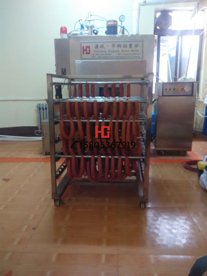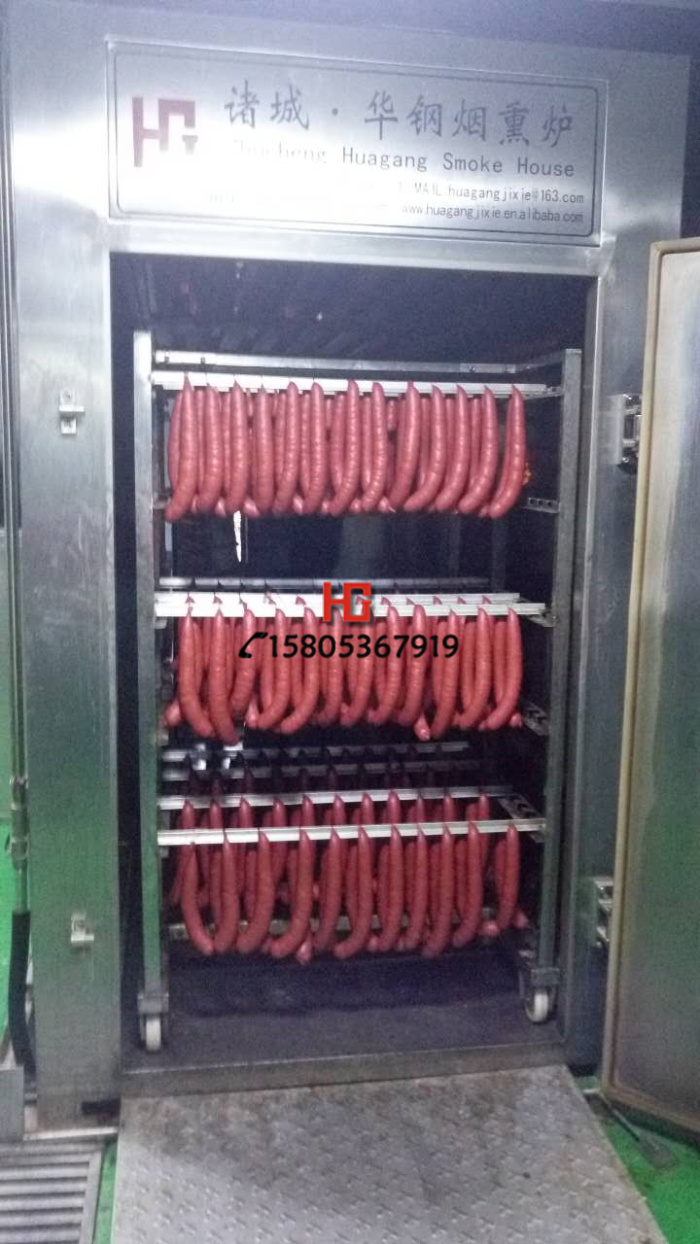華鋼公司的煙熏爐是集蒸煮、烘干、煙熏、上色于一體的煙熏爐,經過煙熏后食品的顏色好看,還有一種煙熏后的香味,讓人感覺香而不膩,也能達到環保效果,代替了傳統的 煙熏爐方法,節省了工人的勞動了,提高工作效率,更增強了食品的口感及彈性。