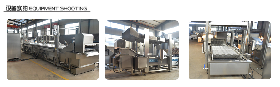 全自動油炸機加熱方式分為:電加熱、導熱油加熱、燃氣加熱。       全自動油炸機設計分為純油自動刮渣設計和油水分離設計     (具體可根據客戶產品定制)     1、全程油溫自動控制,溫度從0----230度可隨意設定,適合炸制各種工藝要求的食品。     2、油炸流水線是動態循環過濾系統,特點為網帶為不銹鋼材質,采用變頻無級調速,油炸時間可調。     3、設有自動提升系統、上罩體和網帶可升降,便于人工清洗。     4、設有自動排渣系統、將產生的殘渣隨時排出。     5、采用上、下雙層網帶傳輸,產品被夾在雙層網帶之間,避免產品漂浮。     6、整機采用304不銹鋼制作而成。     7、有獨立配電箱,操作簡單安全.