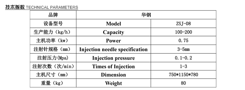 鹽水注射機的作用是將配制的鹽水溶液機械注射到原料肉中,使鹽水溶液在原料肉內部均勻分布.