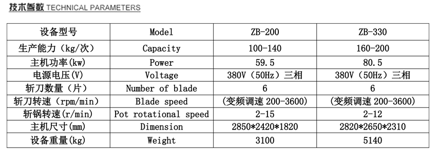 7、斬拌機(jī)刀速、鍋速、斬刀與轉(zhuǎn)鍋的間隙達(dá)到組合,使斬切產(chǎn)品細(xì)度好、升溫小、斬拌時(shí)間短.