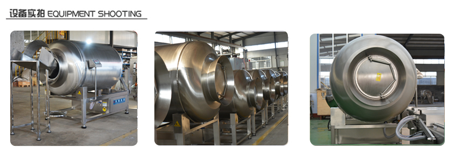 真空滾揉機是在真空狀態下,利用物理沖擊原理,讓肉塊或肉餡在滾筒內上下翻動,相互撞擊、摔打,從而達到按摩、腌漬作用。腌漬液被肉充分地吸收,增強肉的結合力及彈性,提高產品的口感及斷面效果,可以增強保水性,增加出品率,可以改善產品的內部結構。主要適用于牛肉、羊肉、整雞鴨、豬肉等肉制品以及蔬菜。