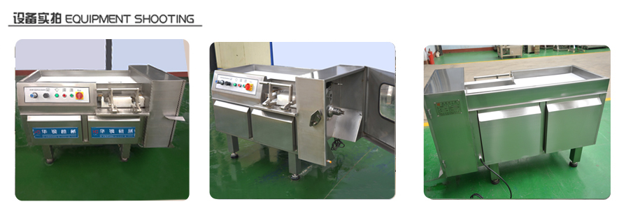 該機(jī)械能做到切“丁”且工作效率高,切割肉丁小規(guī)格為4mm大規(guī)格為20mm,是食品加工切、割方面的設(shè)備;