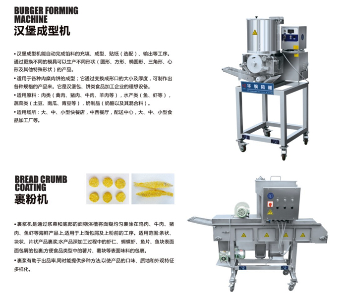 適用于肉類,禽類或魚、水產、土豆、薯類或蔬菜的成型。