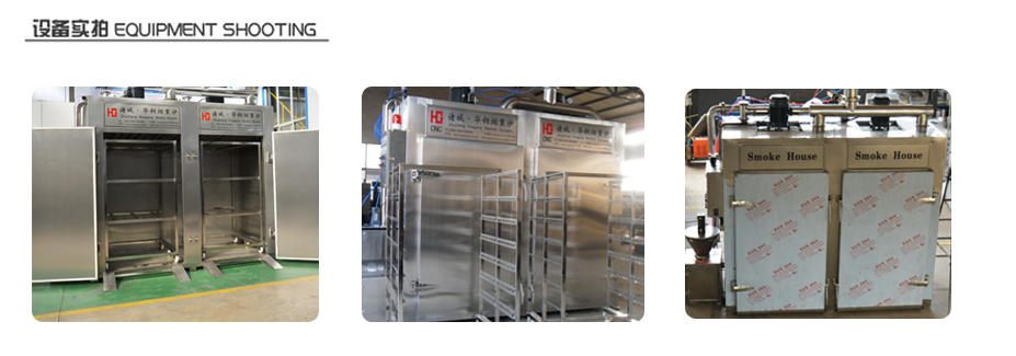 華鋼煙熏爐主要是由爐體、控制箱、發(fā)煙室三部分組成。爐體是進(jìn)行煙熏上色蒸煮烘干的場(chǎng)所,上部有風(fēng)扇、銅盤(pán)管,風(fēng)扇的作用是在電機(jī)的帶動(dòng)將吸上來(lái)的熱氣、煙霧進(jìn)行擴(kuò)散,達(dá)到均勻地效果。銅盤(pán)管是用于烘干功能時(shí),蒸汽通過(guò)蒸汽預(yù)留口進(jìn)入銅盤(pán)管內(nèi),銅導(dǎo)熱性好,傳熱速度快,并且增大了接觸空間,升溫速度更快。電加熱管在兩側(cè),升溫速度快,受熱均勻。兩個(gè)溫度探頭,一個(gè)測(cè)爐內(nèi)溫度一個(gè)測(cè)食品溫度,外觀的幫助我們判斷產(chǎn)品的熟化狀態(tài)。爐內(nèi)兩側(cè)有獨(dú)立煙道,上部設(shè)有排氣口、排煙口,側(cè)面專門(mén)有蒸汽對(duì)流口,目的也是保證爐內(nèi)溫度、煙霧上下一致的效果,避免上下溫度不一致,煙熏色澤不一致的狀況。在爐內(nèi)的底部設(shè)有排水口,排除蒸汽遇冷凝結(jié)形成的水珠。