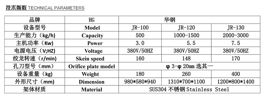 華鋼系列凍肉絞肉工作主要靠旋轉的螺桿將料斗箱中的原料推擠到預切孔板處,利用轉動的切刀刃和孔板上孔眼刃形成的剪切作用將原料切碎,并在螺桿擠壓力的作用下,將原料不斷排出機外。本機可根據物料性質和加工要求的不同,配置相應的刀具和孔板,即可加工出不同尺寸的顆粒,以滿足下道工序的工藝要求。